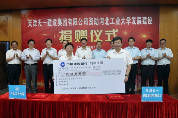 天一建设集团是天津建筑市场的旗舰企业,国内建筑业3A级信用企业、全国建筑业先进企业,多次获得天津市优质工程金奖——海河杯工程奖、中国建筑行业最高奖——鲁班奖等百余项大奖。长期以来,该企业与我校精诚合作,保持着密切、良好的关系。此次捐赠,也是继2006年在土木与交通学院设立郭中朝奖教、奖学基金,2011年双方签署校企战略合作,“天一奖助学金”“天一艺术基金”协议,2013年我校 110年校庆捐建北辰校区的地标建筑——工学楼,开展多层次、多角度、多领域合作探索之后,双方在求同文化、加深校企合作的又一重大举措。