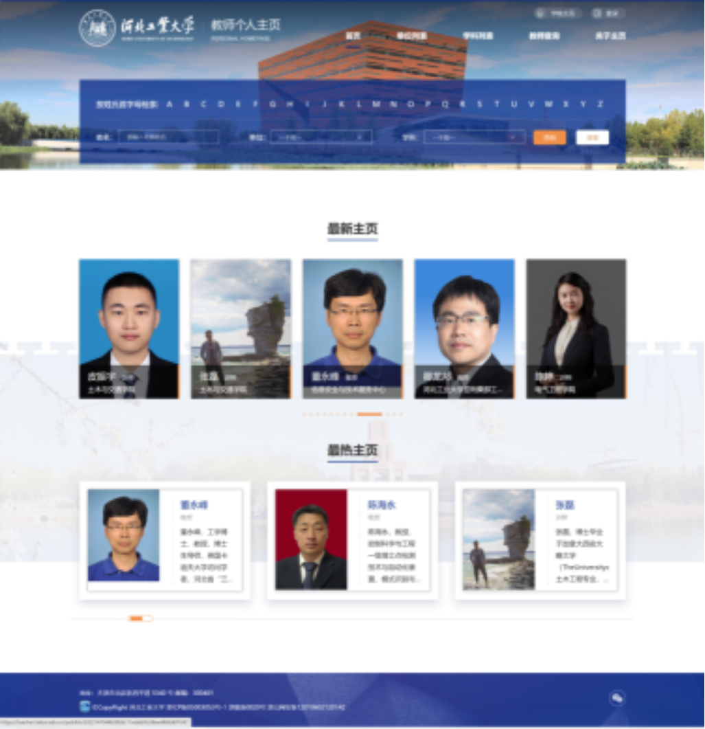 教师个人主页:2023年7月上线教师个人主页平台,为教师提供展示个人学术研究与教学工作及成果的平台,教职工可自主管理和更新个人主页,现已有256名教师开通教师个人主页。