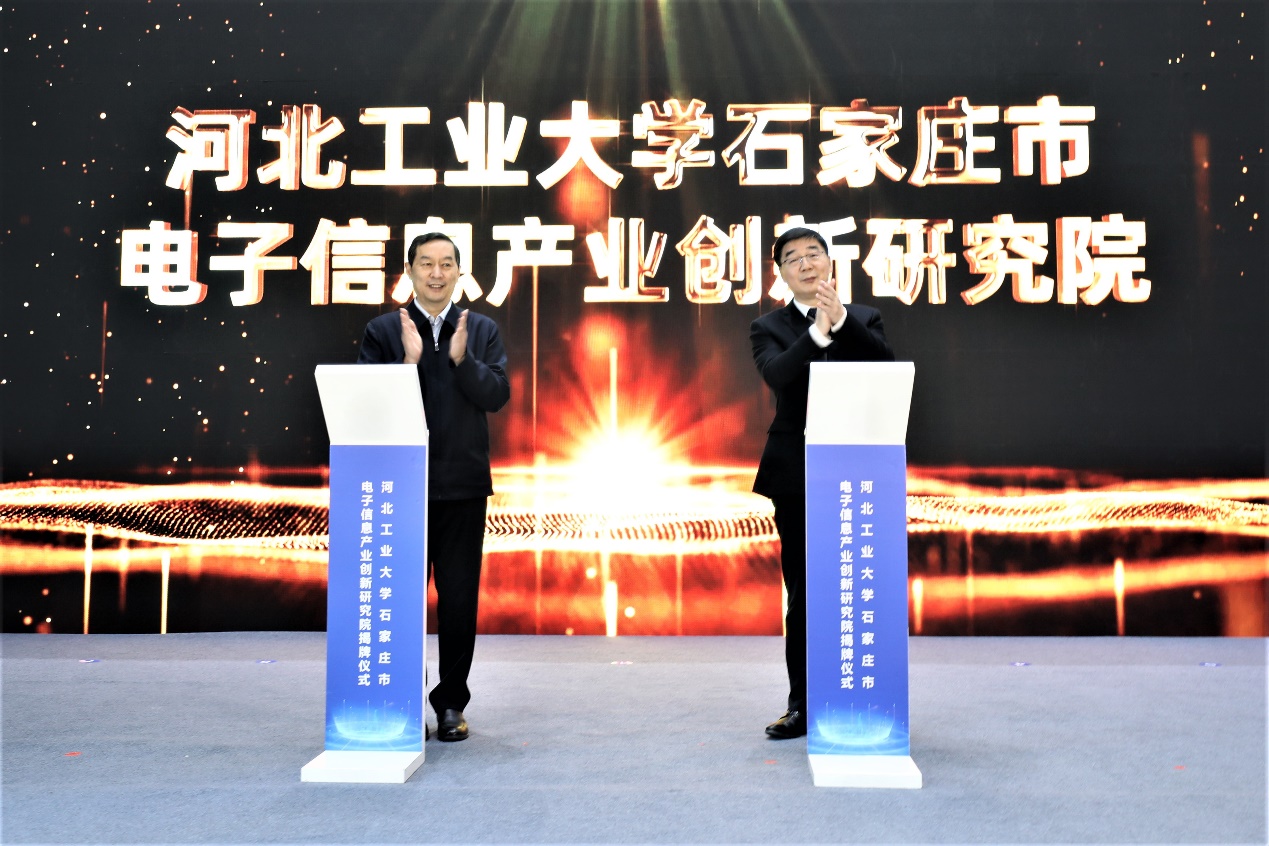 1月16日,河北工业大学石家庄市电子信息产业创新研究院揭牌仪式在石家庄市鹿泉区举行。河北省委常委、石家庄市委书记张超超与校党委书记韩旭共同为创新研究院揭牌。