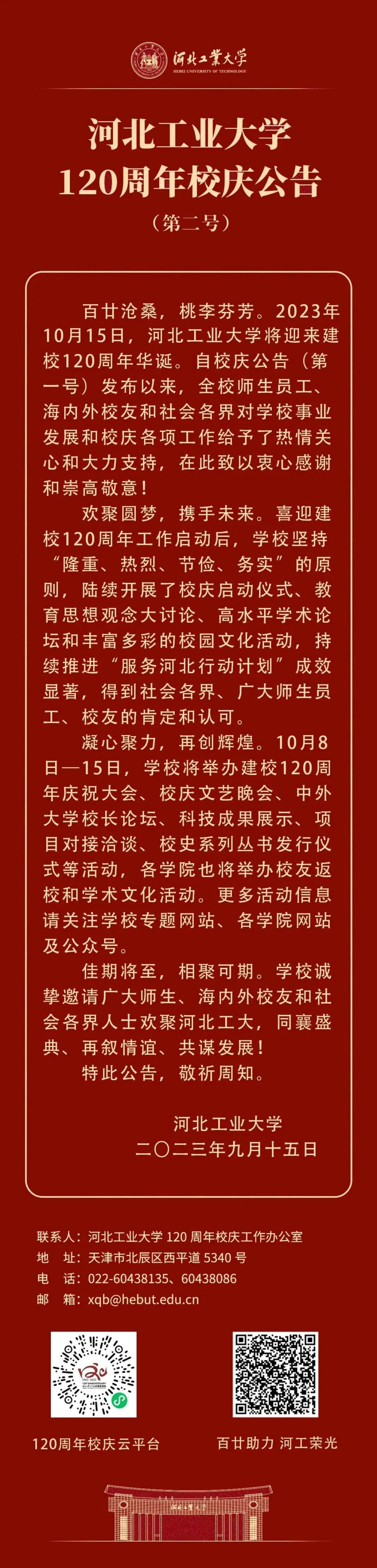 河北工业大学120周年校庆公告(第二号)