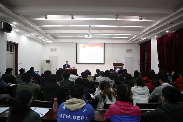 3月13日晚,校党委书记李强在计算机学院一楼报告厅为学生讲授“认真学习十八届六中全会精神,牢固树立‘四个意识’,争做合格学生党员”形势与政策教育第一课,党委组织部、党委宣传部相关部门负责同志及学生代表参加。课程由党委宣传部部长陈鸿雁主持。