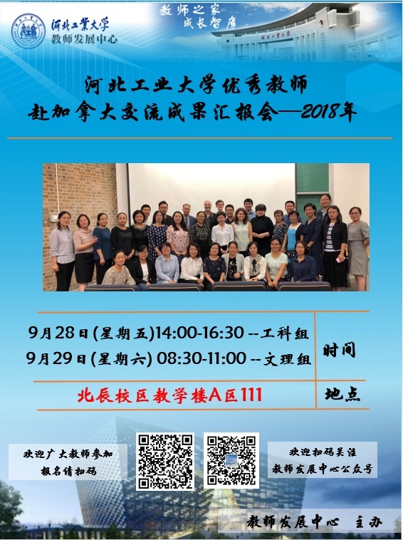 报告主题:年河北工业大学优秀教师赴加拿大交流成果汇报会(2018年)—文理组